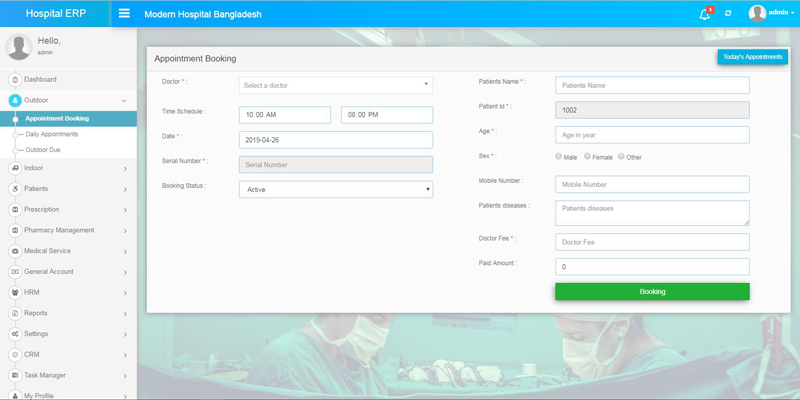The patient's management features help the hospital to manage patient's details like patient information, bed availability, consultant and prescription, medical information, lab reports and so on.